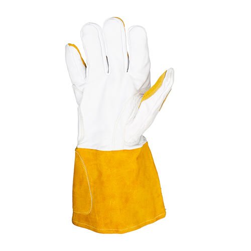 These premium welding gloves are engineered to deliver maximum protection, dexterity, and comfort for demanding welding applications. The top grain goatskin leather palm ensures excellent tactile sensitivity and control, allowing welders to handle tools and equipment with superior precision. The seamless forefinger design further enhances grip and control, giving users a smooth and natural feel during critical operations.The split cowhide leather back and extended 5-inch cuff provide outstanding resistance to heat, sparks, and spatter. Even under high heat exposure, the cowhide remains soft and flexible, ensuring durability without sacrificing comfort. Inside, a fleece lining offers added heat insulation without unnecessary bulk, keeping your hands cool and comfortable during extended work sessions.To withstand heavy use, these gloves incorporate a thumb strap and reinforced patch for added strength in high-wear areas. The innovative Glidepatch™ feature on the palm side and cuff reduces friction and minimizes radiant heat, making it easier to slide your hand smoothly across surfaces or rest it on hot worktables.Constructed with DuPont™ Kevlar® stitching, the seams are protected against heat, sparks, and abrasion, ensuring long-lasting performance even under extreme working conditions.Whether you are engaged in welding, fabrication, or other heavy-duty industrial tasks, these gloves provide the perfect combination of heat resistance, protection, and flexibility to help you work with confidence and precision.