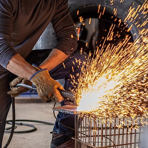 These Heavy Duty Work Gloves are crafted from 100% split cowhide leather, a material well-known for its toughness, abrasion resistance, and long-lasting performance. Designed with the hardworking professional in mind, these gloves are built to withstand rugged tasks while still keeping your hands comfortable and protected.The gloves are treated with HydraHyde water-resistant technology, which prevents moisture from penetrating the leather. This means your hands stay dry even in wet conditions, and unlike ordinary leather gloves, these will not become stiff or brittle after exposure to water.For added durability, the gloves feature reinforced leather patches on the palm, thumb, and fingers. These extra layers of protection strengthen the high-wear areas, making the gloves especially reliable for heavy-duty tasks such as ranching, fencing, and construction work.An elasticized slip-on wrist ensures that the gloves stay securely in place while allowing for quick and easy removal. This design gives you both convenience and comfort during long hours of use.Thanks to their high resistance to abrasions, punctures, and wear, these gloves are versatile and suitable for a wide range of applications including farming, maintenance, landscaping, ranching, fencing, and general construction projects. Whether you are working on the farm, handling tools, or tackling demanding outdoor jobs, these gloves deliver the protection, durability, and comfort you need every day.